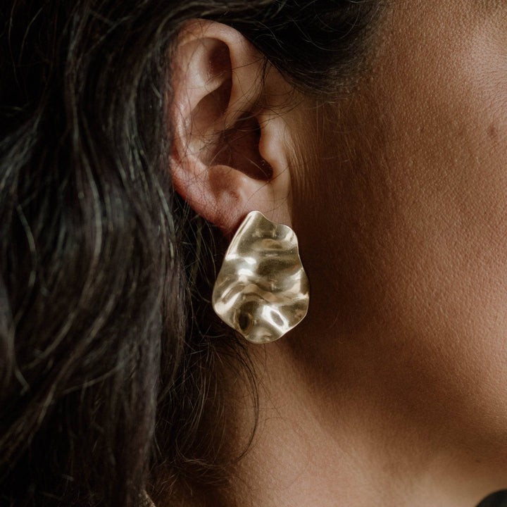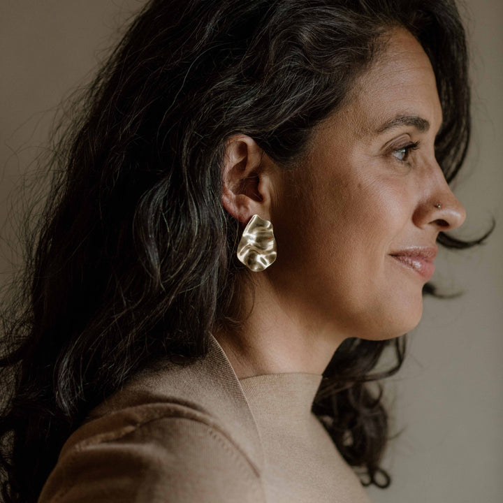 Wavy and dynamic solid brass pieces on sterling silver studs.
