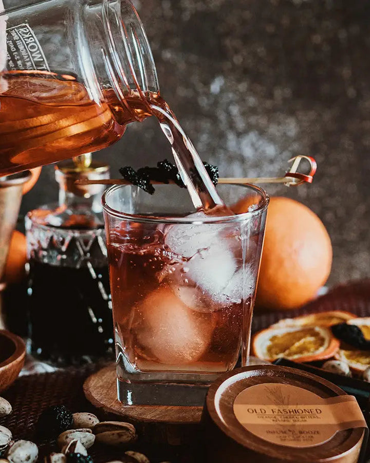 If you're looking for a creative way to elevate your Old Fashioned, look no further than this infusion kit. With oranges, cherries and bitters infused non-GMO Vegan Cane Sugar, no need to add any extra's...this kit is perfect for any whiskey or bourbon lover. Infusion kit contains: oranges, cherries, and bitters infused non-GMO Vegan Cane Sugar. We LOVE pairing this infusion with our favorite top shelf Whiskey or Bourbon. Other spirits to use include: Vodka, Tequila, Gin, Rum, Bourbon or Hot Water for a zero-proof recipe. Simply pour infusion over ice and enjoy. Each kit is 16 oz. which makes 8-10 cocktails, alcohol not included.