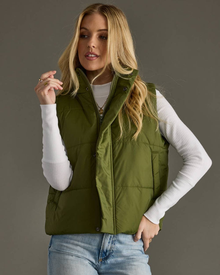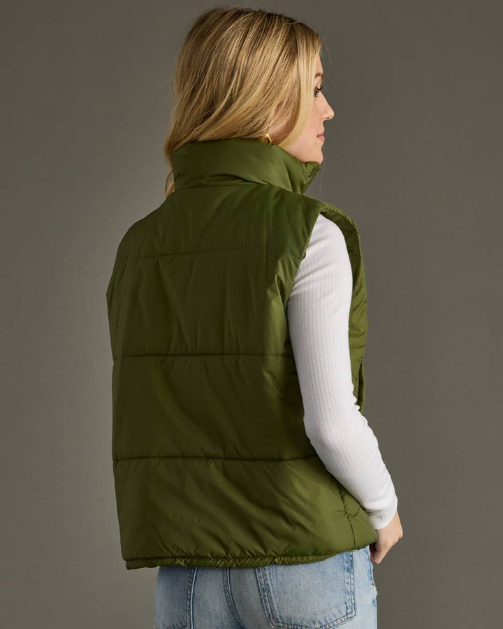 Brighten up brisk days with our Olive Puffer Vest—a bold, versatile layer designed to keep you cozy without compromising on style. With beautiful forest green hue and classic puffer design, it’s perfect for everything from mountain getaways to everyday errands.