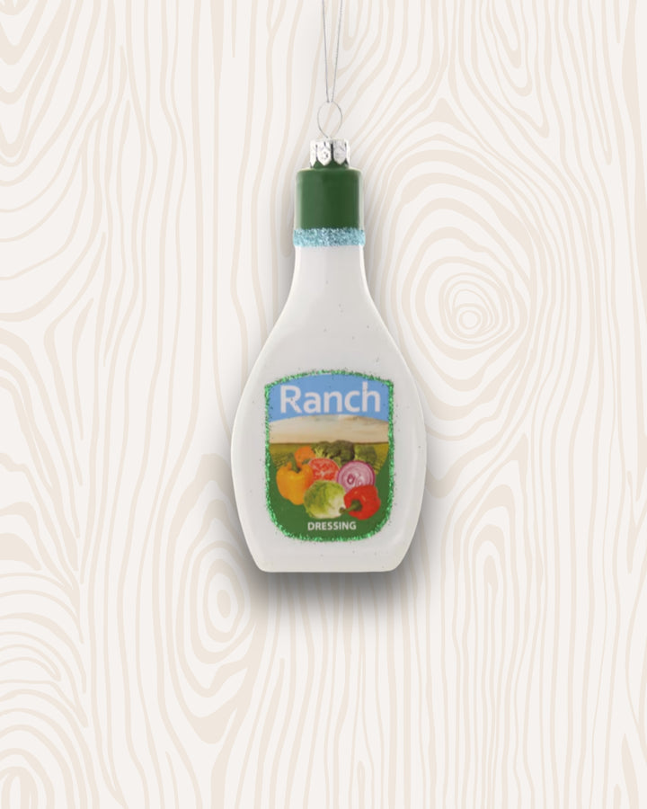 Measuring 2.25" long, 1" wide, and 4.5" high, it’s a playful addition to any holiday tree and a must-have for foodies who know that everything’s better with ranch.