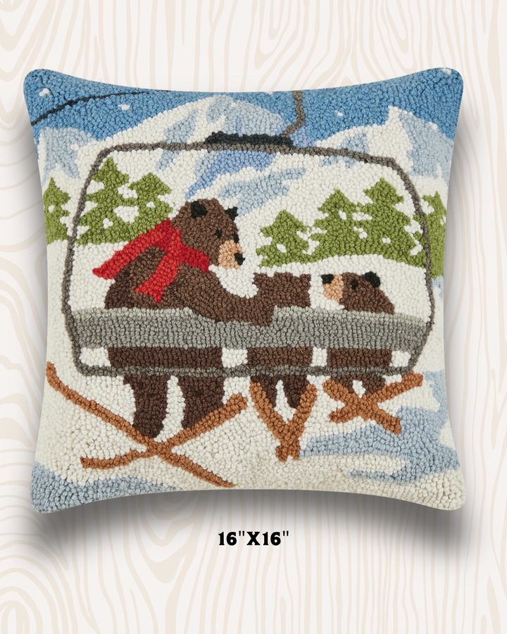Ski Lift Bears Wool Hook Pillow | 16"x16"