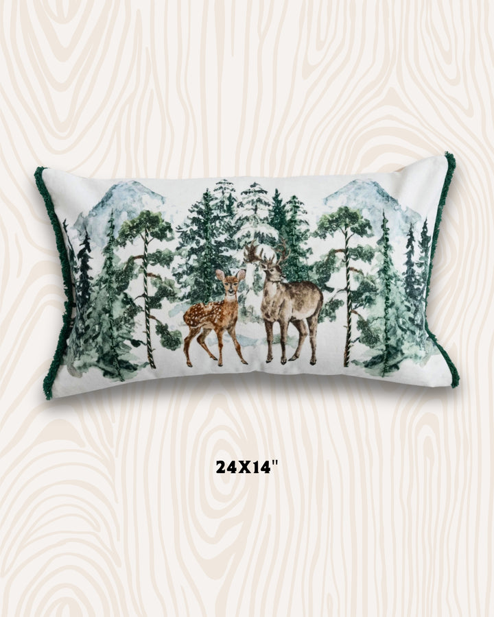 Woodland Deer Velvet Pillow | 24"x14"